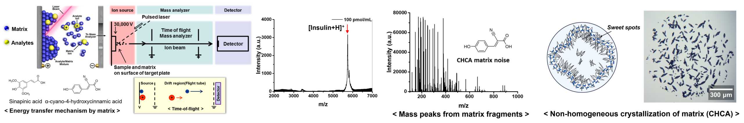 - Enhancement of ionization/desorption efficiency without organic matrices